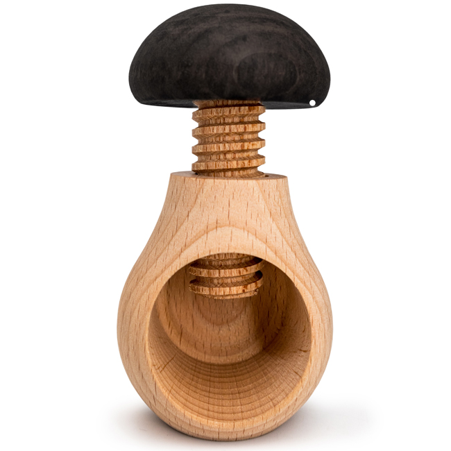 Дървена орехотрошачка със завиващ механизъм, подходяща за орехи, лешници и други ядки с твърда черупка. Механизмът прави счупването на черупката лесно и удобно, без да изисква сила. Така че когато решите да приготвите любимия си сладкиш с орехи, да го направите с желание и лекота.