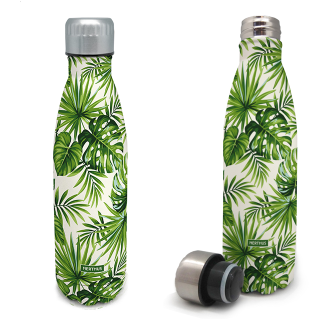 Двустенната бутилка от неръждаема стомана на Nerthus дава възможност да се поддържа температурата на консумация на топли и студени напитки за няколко часа.