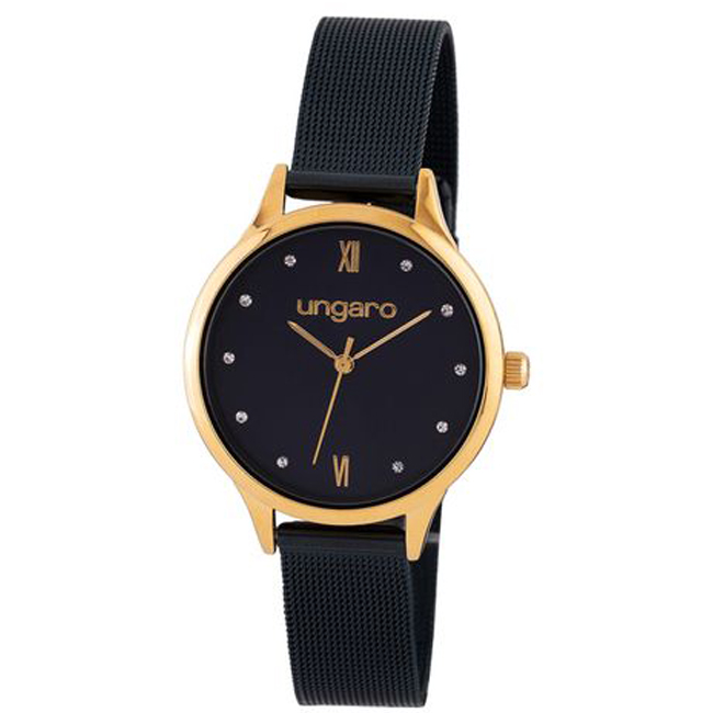 • Минималистичният тъмно син циферблат е украсен със кристали.