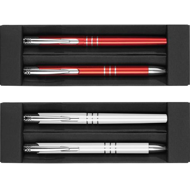 • Комплект пишещи средства с изчистен дизайн - ролер и химикалка.