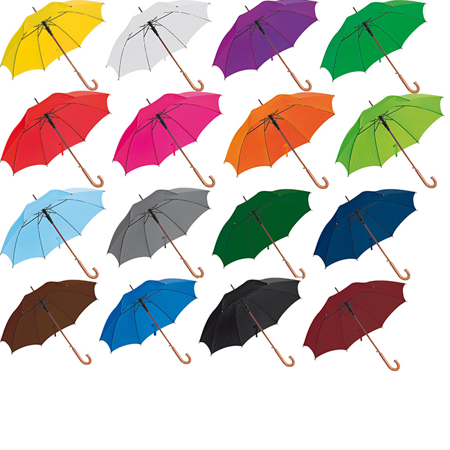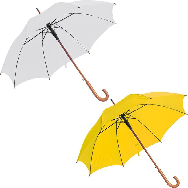 • Класически автоматичен чадър с извита дървена дръжка и 8 панела.