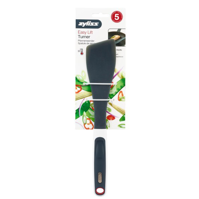 Шпатулата е термоустойчива до 240°С/464°F, подходяща е за съдове с незалепващо покритие и за почистване в съдомиялна машина.