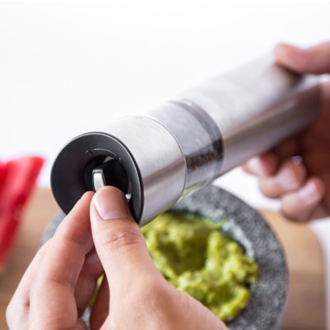 Мелничката е чувствителна на движение – достатъчно е да я обърнете надолу, за да започне автоматично да мели, а когато я върнете в първоначалното ѝ положение, автоматично спира. Всичко това Ви позволява да използвате мелничката само с една ръка. Прецизният керамичен механизъм и лесното регулиране на едрината на смилане ще Ви осигурят перфектно подправени ястия при всяко готвене.