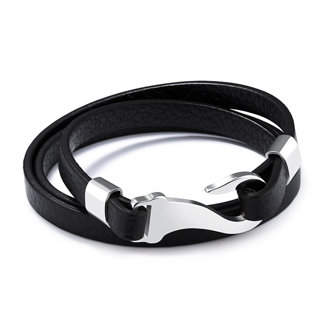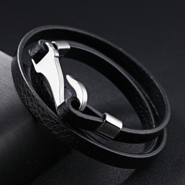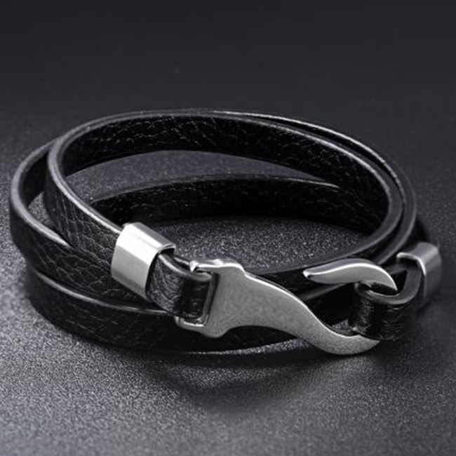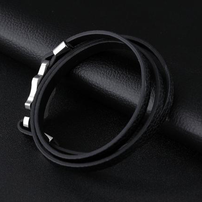Стилна кожена мъжка гривна SILVER FLAME