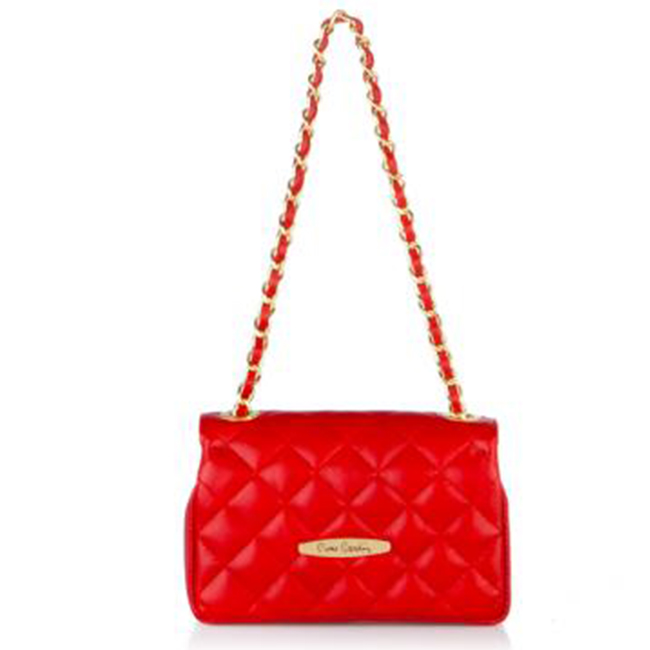 Дамска чанта червена, естествена кожа PIERRE CARDIN