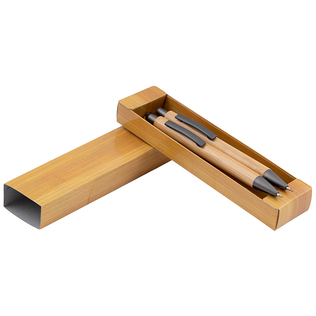 Изберете еко комплект от рекламни бамбукови химикалка и автоматичен молив. Оставете своя индивидуален отпечатък и се възползвайте от възможността за лазерно гравиране на продуктите.