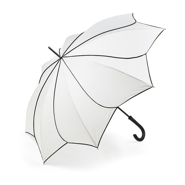 - Елегантен чадър в нежно бяло с форма, наподобяваща цвете .