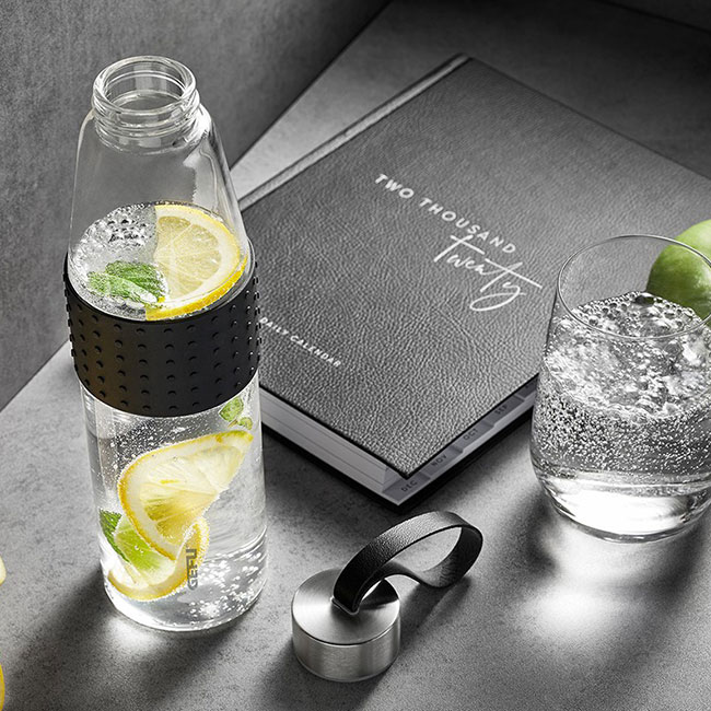 Стъклената бутилка "OLIMPIO" е изработена от здраво боросиликатно стъкло и е идеална за студени и топли напитки.