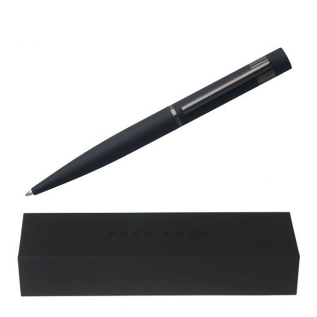 Луксозната метална химикалка New Loop Dark Blue е със стилна и модерна визия, съчетаваща метални акценти с меко, матово, гумено покритие. В красива подаръчна кутия.