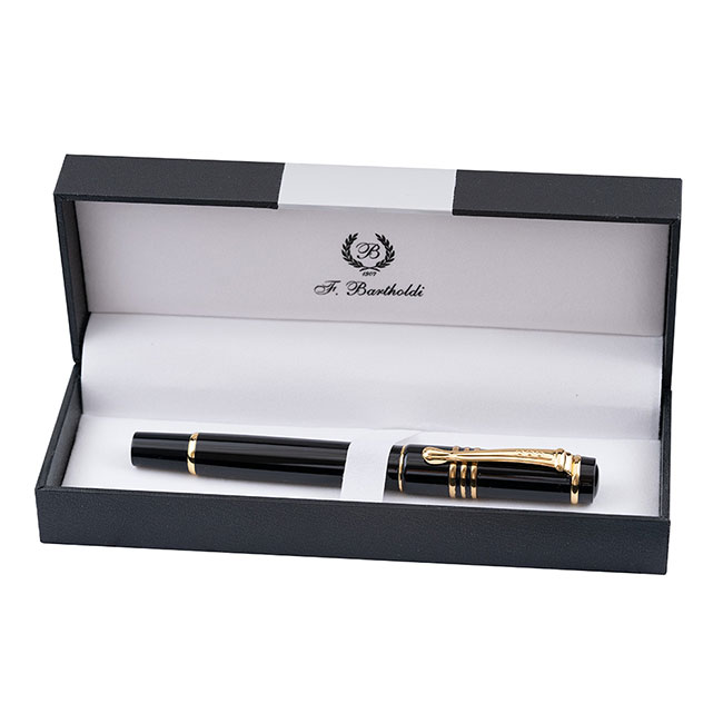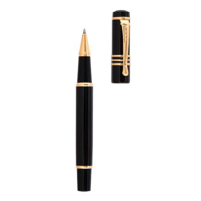- Стилен метален ролер с черно лаково покритие, съчетано със златисти елементи.