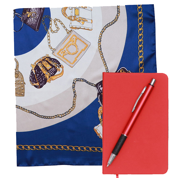 - Eлегантен шал, бележник с твърди гумирани корици и рекламна метална химикалка с гумен грип