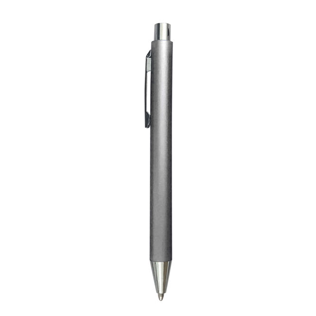 - Рекламна пластмасова химикалка с цветно лъскаво покритие и хромирани елементи.