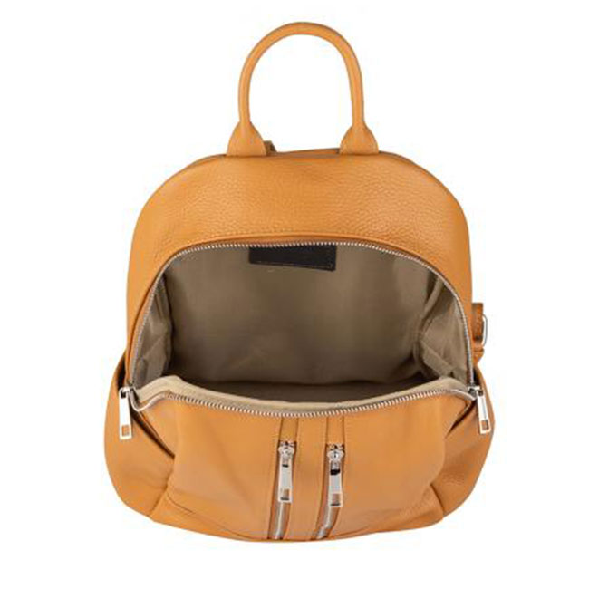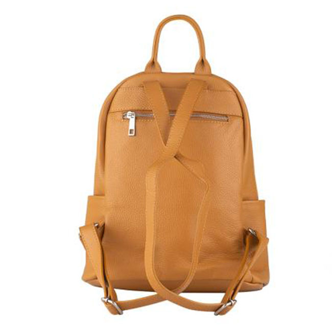 - Дамска раница Rossi изработена от естествена кожа. Раницата съдържа 1 преграда, 2 малки джоба с цип, 2 странични джоба с цип.
