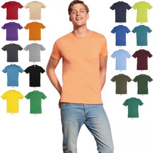 50 броя мъжки памучни тениски, различни цветове REGENT + ситопечат в 1 цвят с лого размер 10х10см.